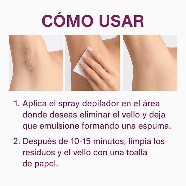 Di adiós al dolor de la depilación tradicional. Este spray elimina el vello de forma rápida y sin molestias. Ideal para piernas y axilas, deja la piel suave y sin irritaciones.
